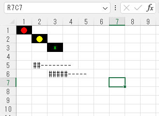 Cells(R, C).Value = String(filled, "#") & String(10 - filled, "-")